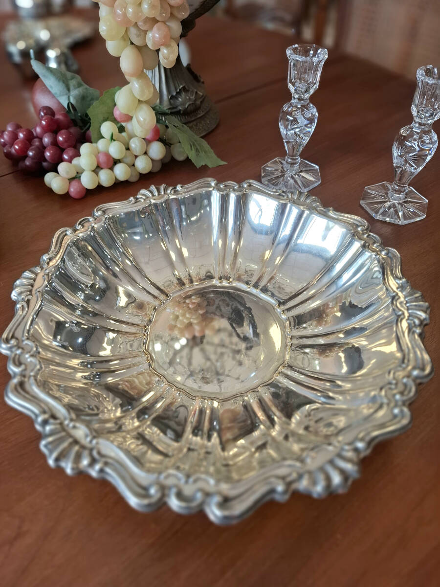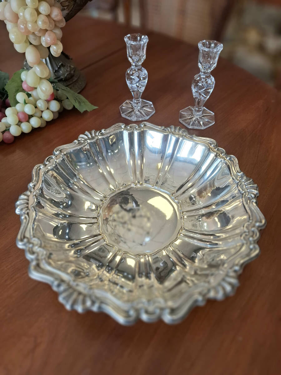Frutero vintage de los años 50-60, fabricado en metal plateado. Una pieza decorativa con estilo retro y gran personalidad, ideal para dar un toque clásico y distinguido a tus mesas. Perfecto para quienes aprecian el diseño atemporal y la calidad de antaño. Excelente estado de conservación.