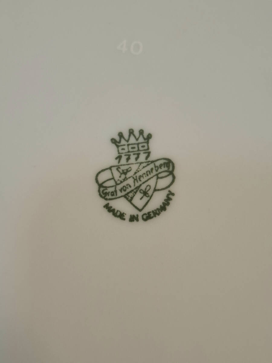 Exclusiva vajilla de porcelana Graf Von Henneberg 1777, fabricada en Alemania, reconocida por su tradición artesanal y alta calidad.
